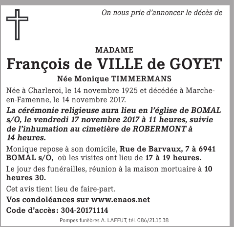 Madame Monique de VILLE de GOYET née TIMMERMANS
