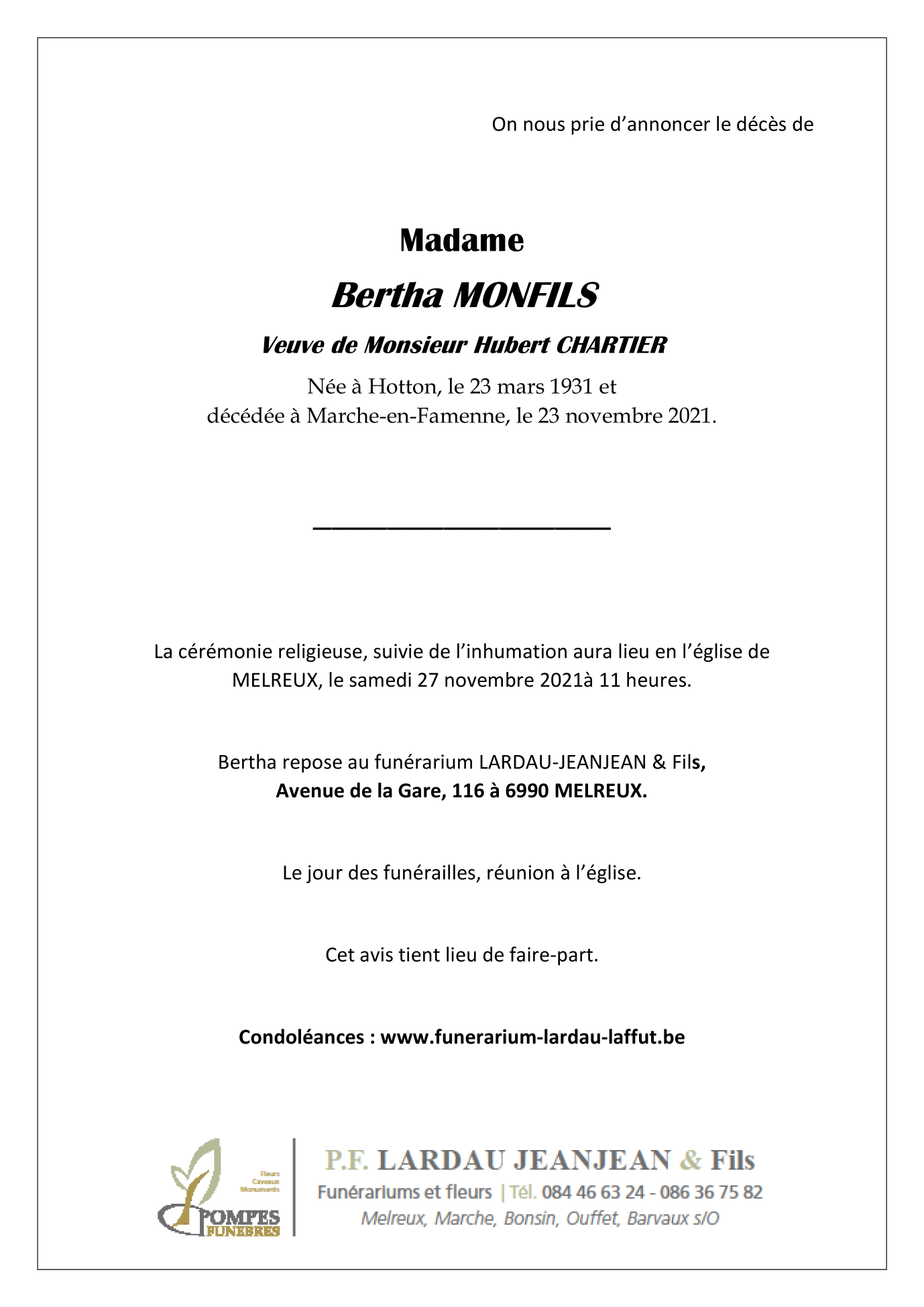 Pompes funèbres LARDAU – LAFFUT