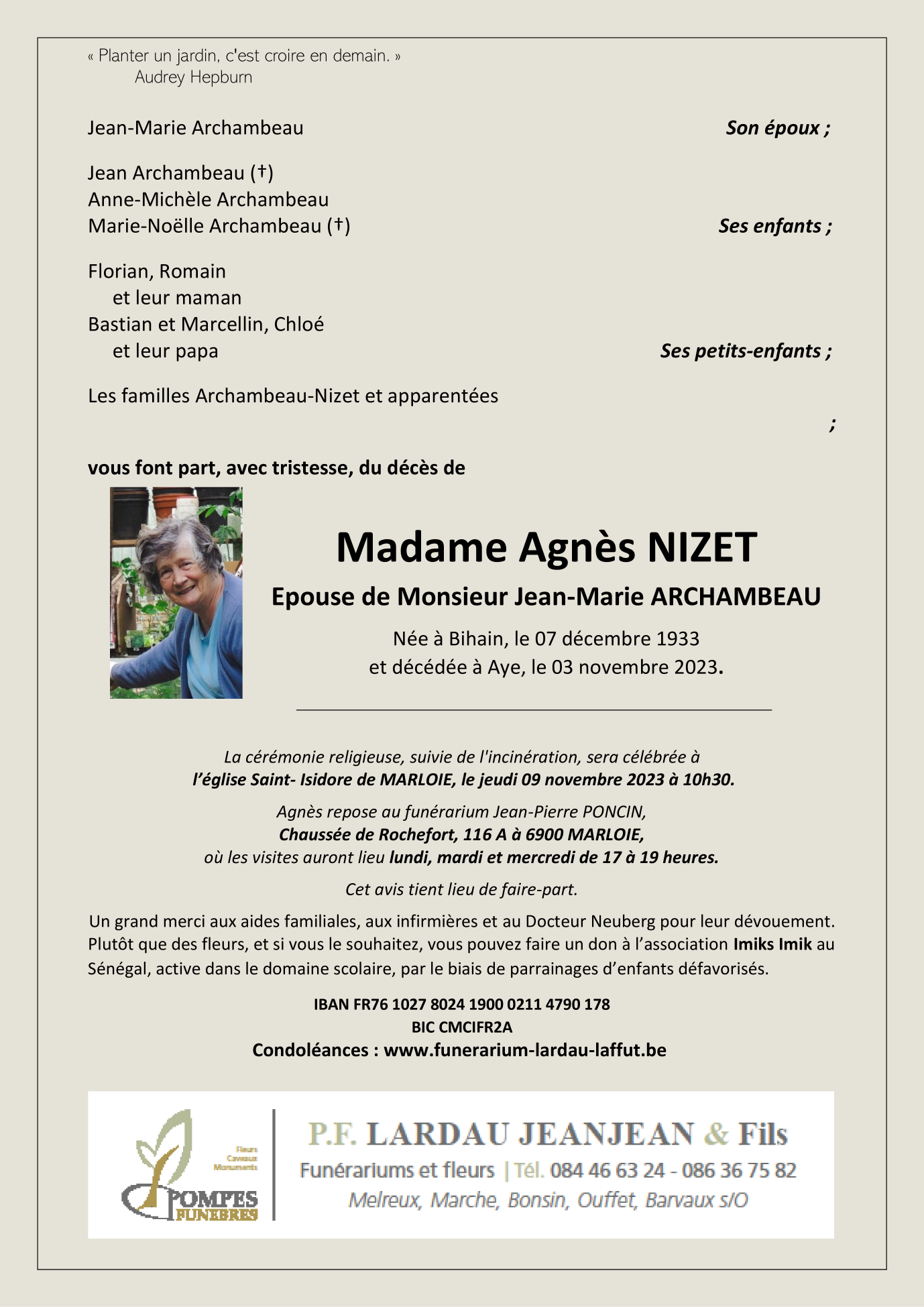 Epouse de Monsieur Jean-Marie ARCHAMBEAU