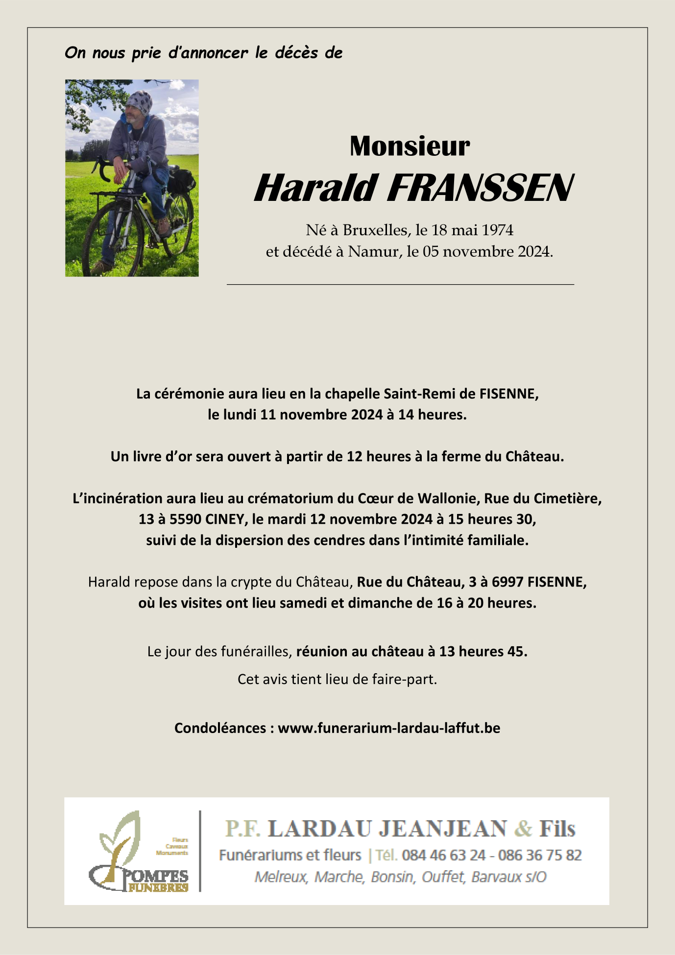 Décédé à Namur (5000) le mardi 5 novembre 2024 à l'âge de 50 ans