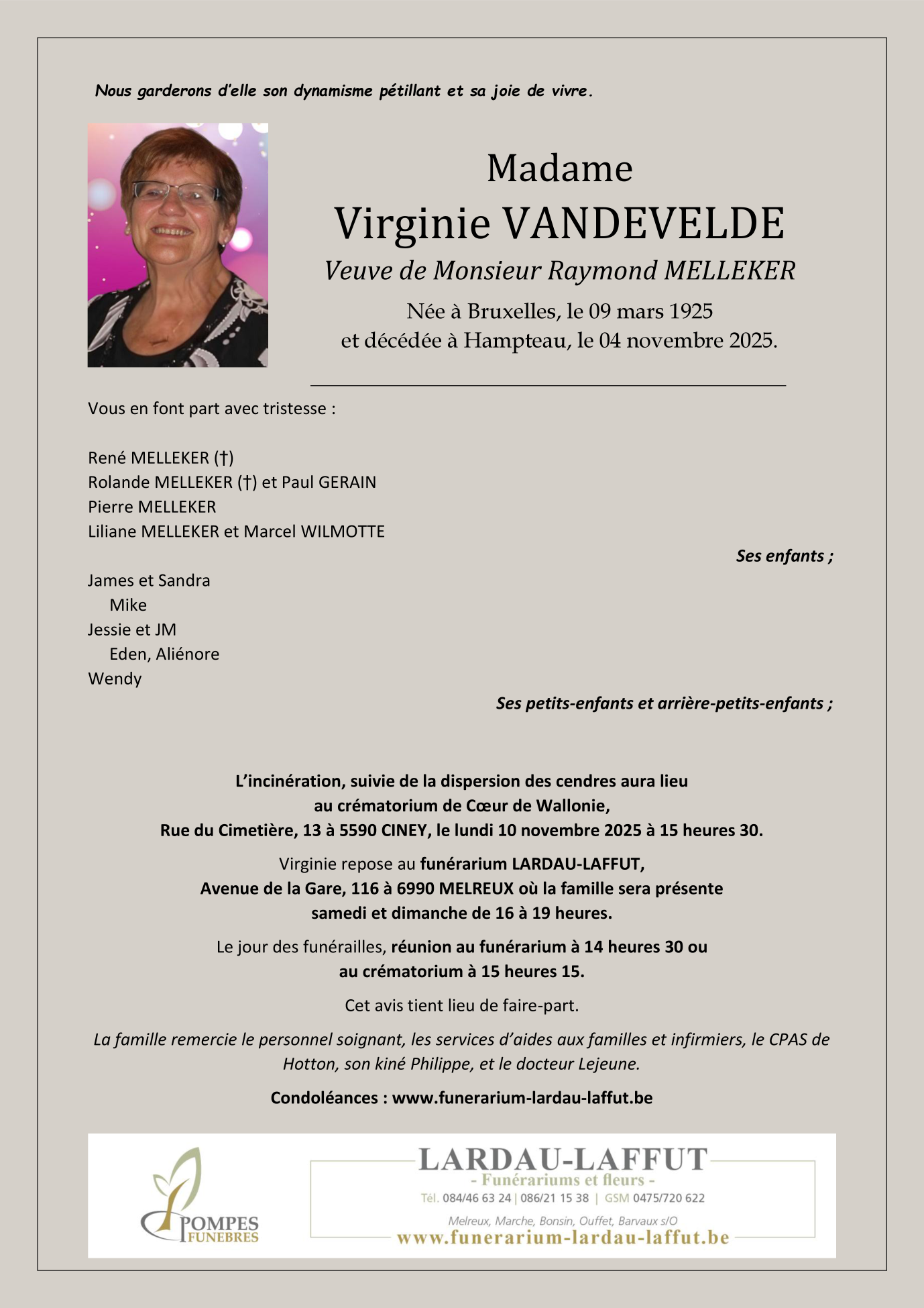 Décédée à Hampteau (6990) le mardi 4 novembre 2025 à l'âge de 100 ans