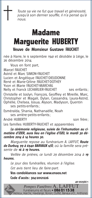 Décédé à Liège (4000) le vendredi 26 décembre 2014 à l'âge de 73 ans