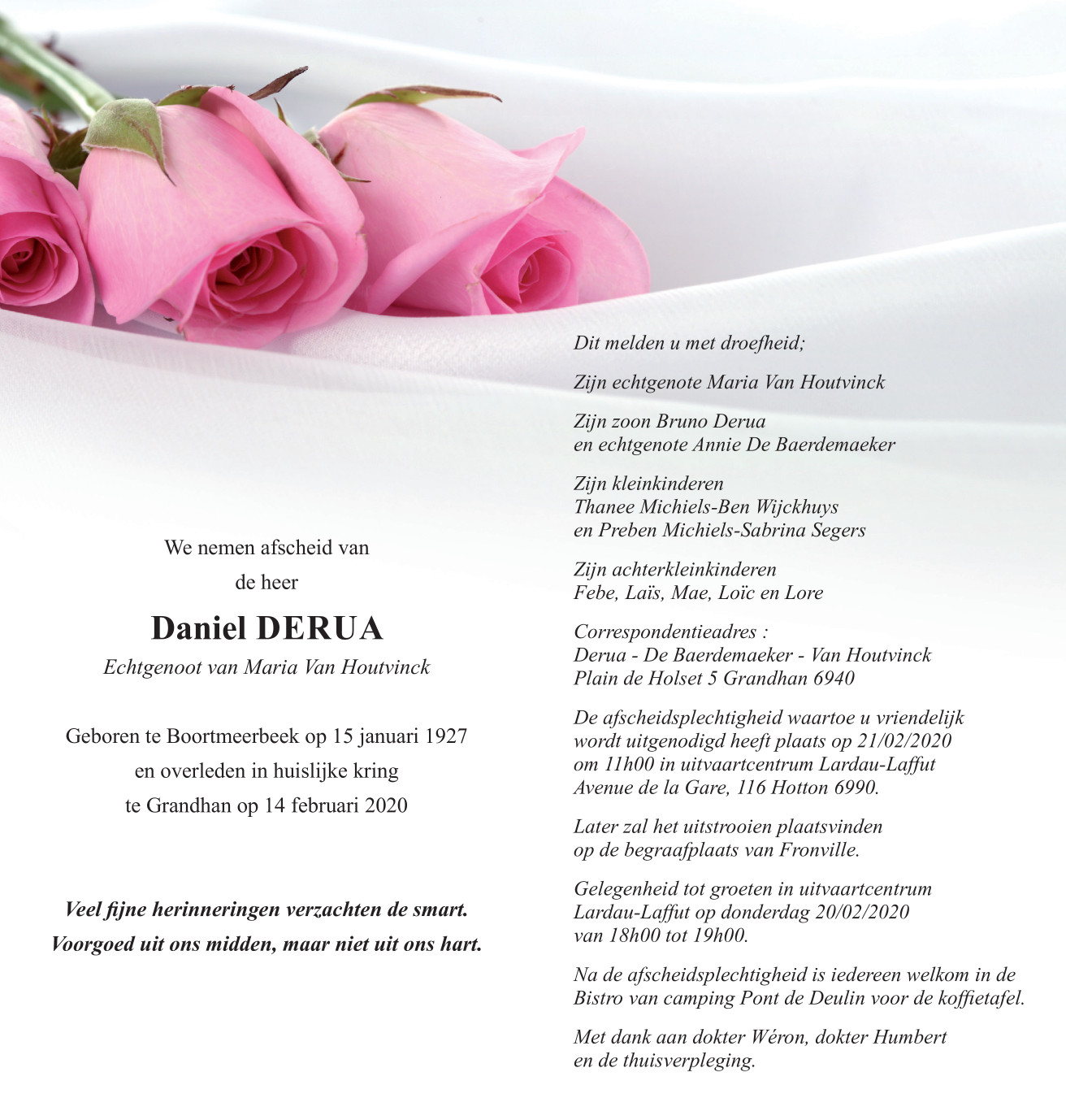 Décédé à Grandhan (6940) le vendredi 14 février 2020 à l'âge de 93 ans