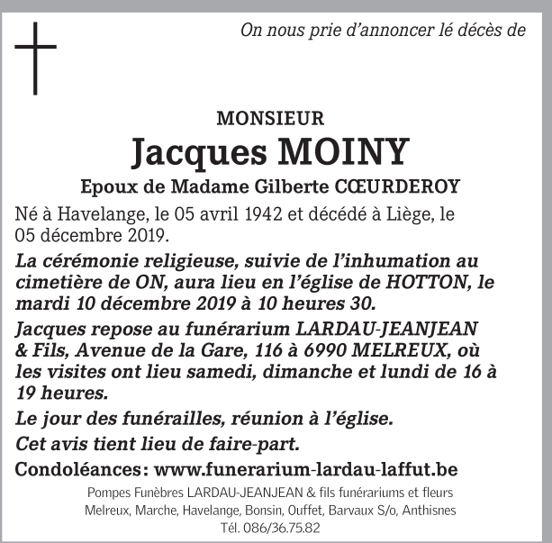 Décédé à Liège (4000) le jeudi 5 décembre 2019 à l'âge de 77 ans