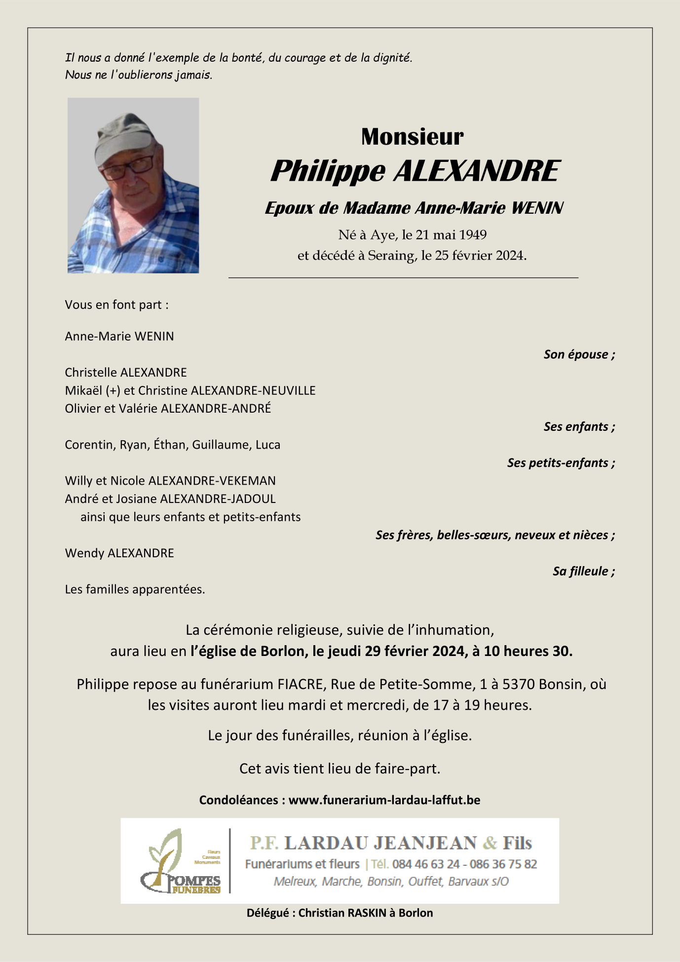 Décédé à Seraing (4100) le mardi 27 février 2024 à l'âge de 74 ans