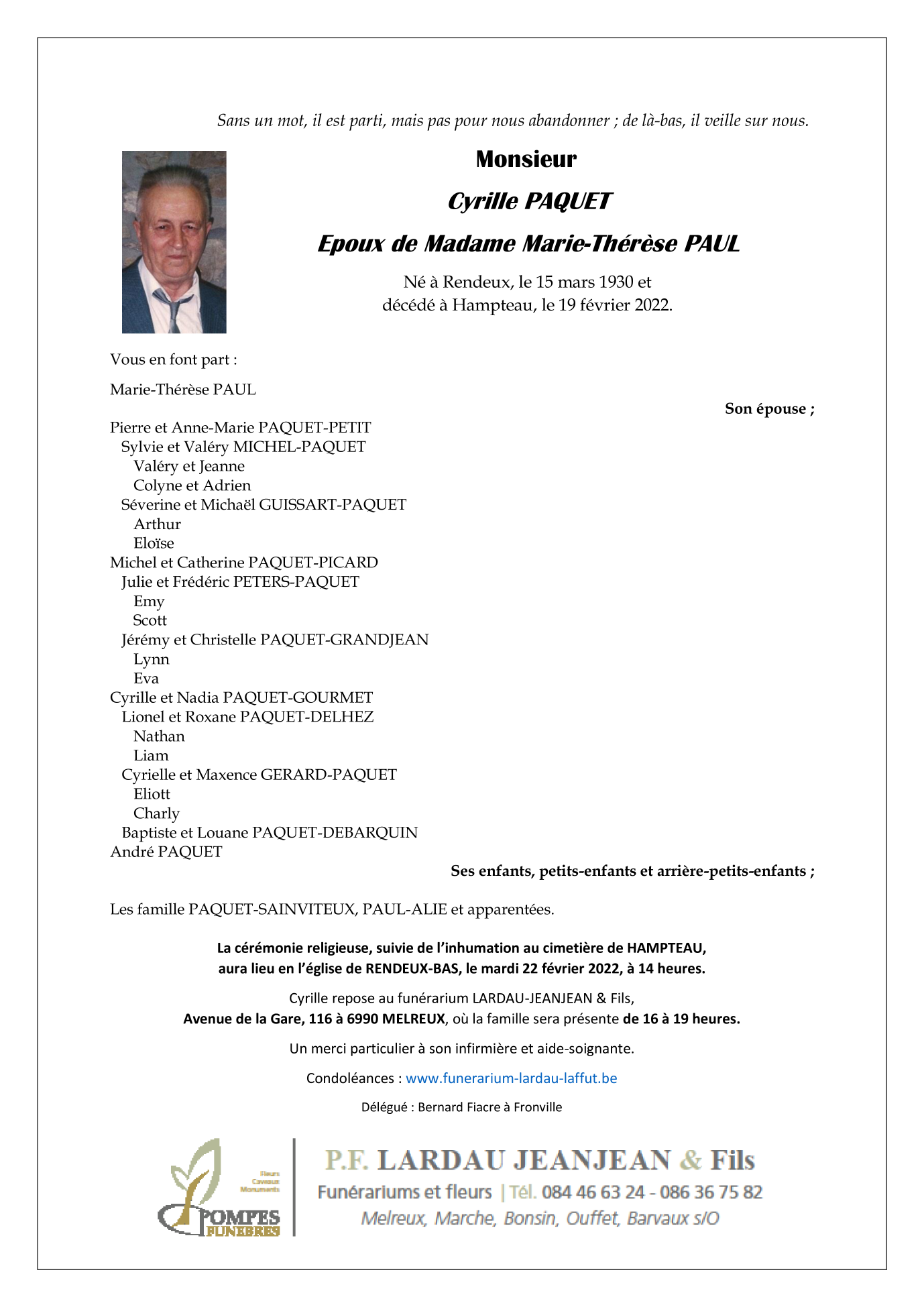 Epoux de Madame Marie-Thérèse PAUL