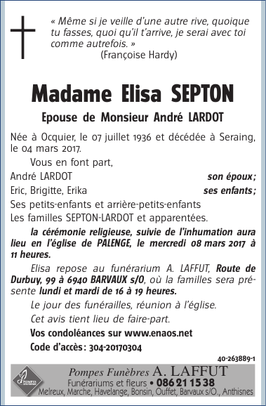 Epouse de Monsieur André LARDOT