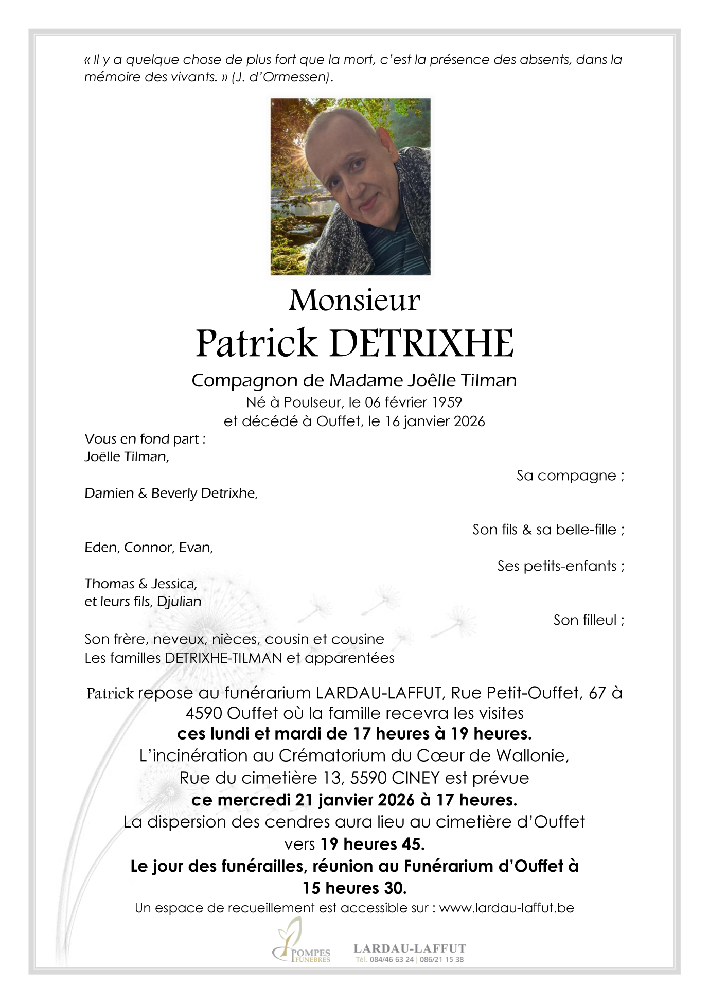Décédé à Ouffet (4590) le vendredi 16 janvier 2026 à l'âge de 66 ans