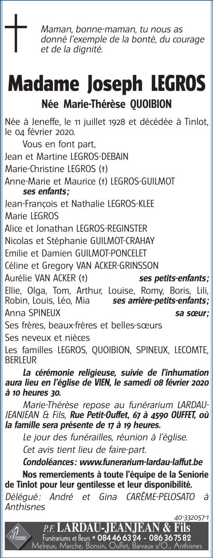 Madame Marie-Thérèse LEGROS née QUOIBION