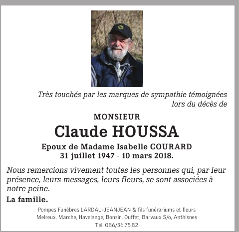 Décédé à Montegnée (4420) le samedi 10 mars 2018 à l'âge de 70 ans